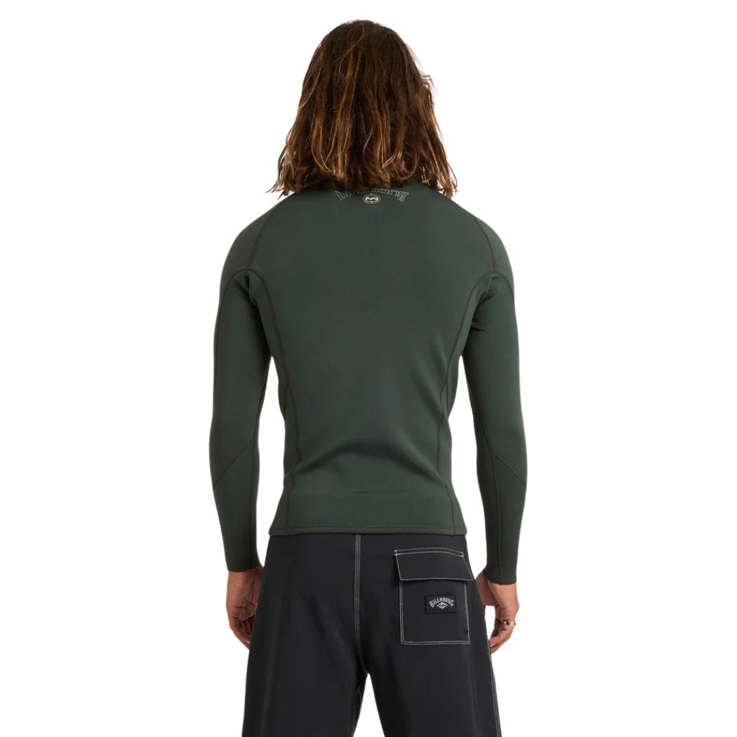 The Billabong 101 Absolute Natural Jacket Forest is a mens wetsuit jacket. It is a must-have for surfers looking for lightweight protection during the shoulder seasons. Crafted from 1mm premium neoprene, this men’s wetsuit jacket is designed to keep you comfortable while maintaining flexibility and freedom of movement. Perfect for pairing with your boardies, it’s ideal for those in-between days when the water’s not quite warm enough for just shorts. Made with recycled materials, combining performance and eco-conscious innovation.
