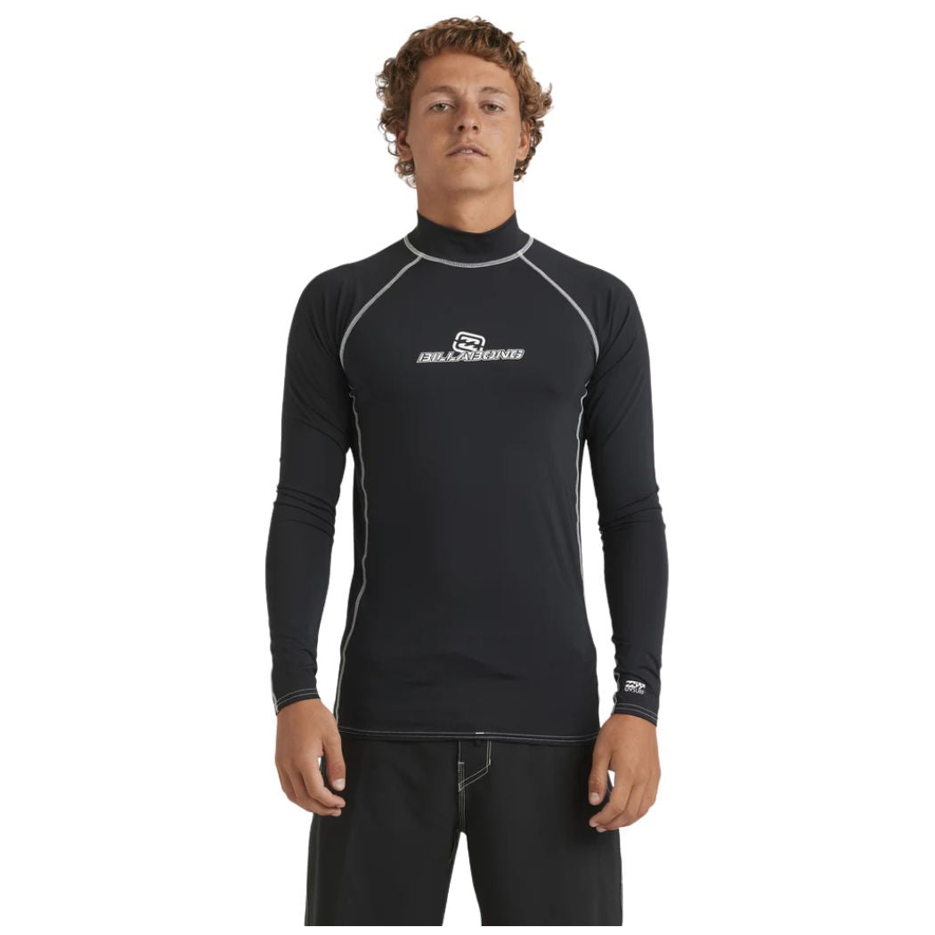 The Billabong Jimmy Contrast Long Sleeve Rash Shirt Black is a mens rash shirt. It is made in a performance fit for comfort whilst surfing or in the water. With a great front print, UPF 50+ sun protection and contrast paneling, this is surf ready.