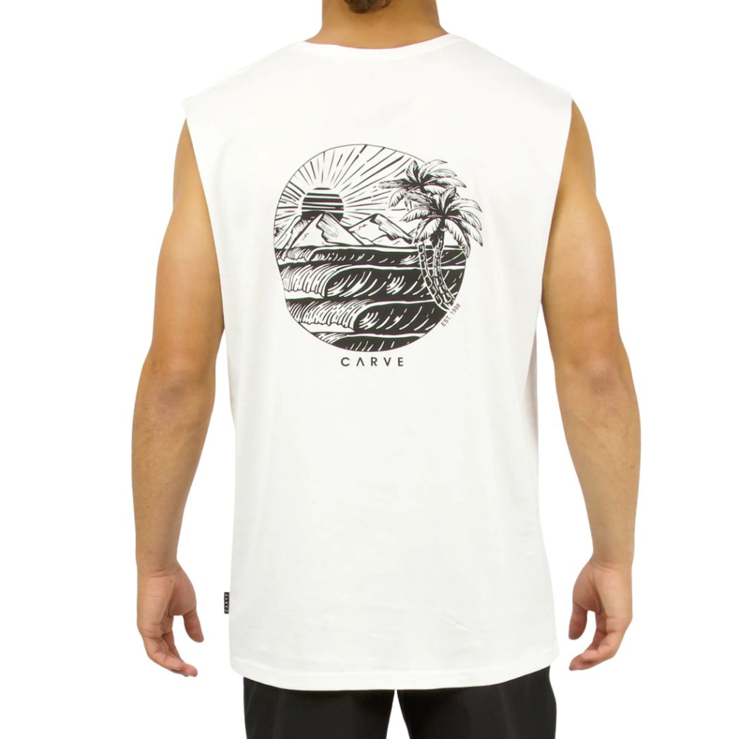 The Carve Eventide Mens Muscle Whipped Butter is a mens muscle. It is made for hot summer days and easy surf living. From affordable surf brand Carve, this sleeveless tee keeps things cool and casual with its relaxed fit and soft feel. Perfect for beach hangs, skate park sessions, or arvo cruisers, it’s your go-to for comfort and surf style. Simple, durable, and made to wear all summer long.