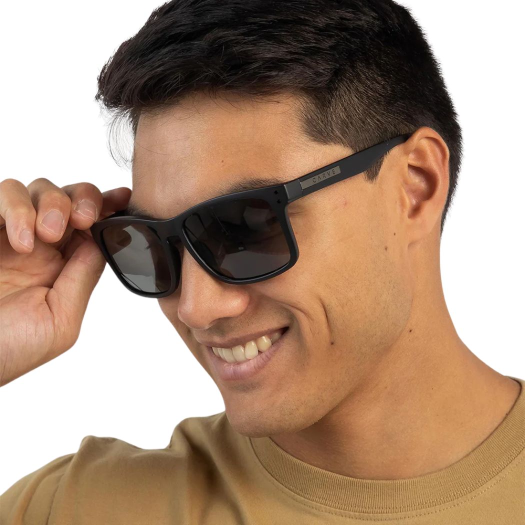 The Carve Goblin XL Matte Black Grey Polar are mens eyewear. This square frame is in a slightly larger frame. Contemporary styling for everyday wear. Every carve frame comes in a branded pouch with an internal cleaning cloth attached.