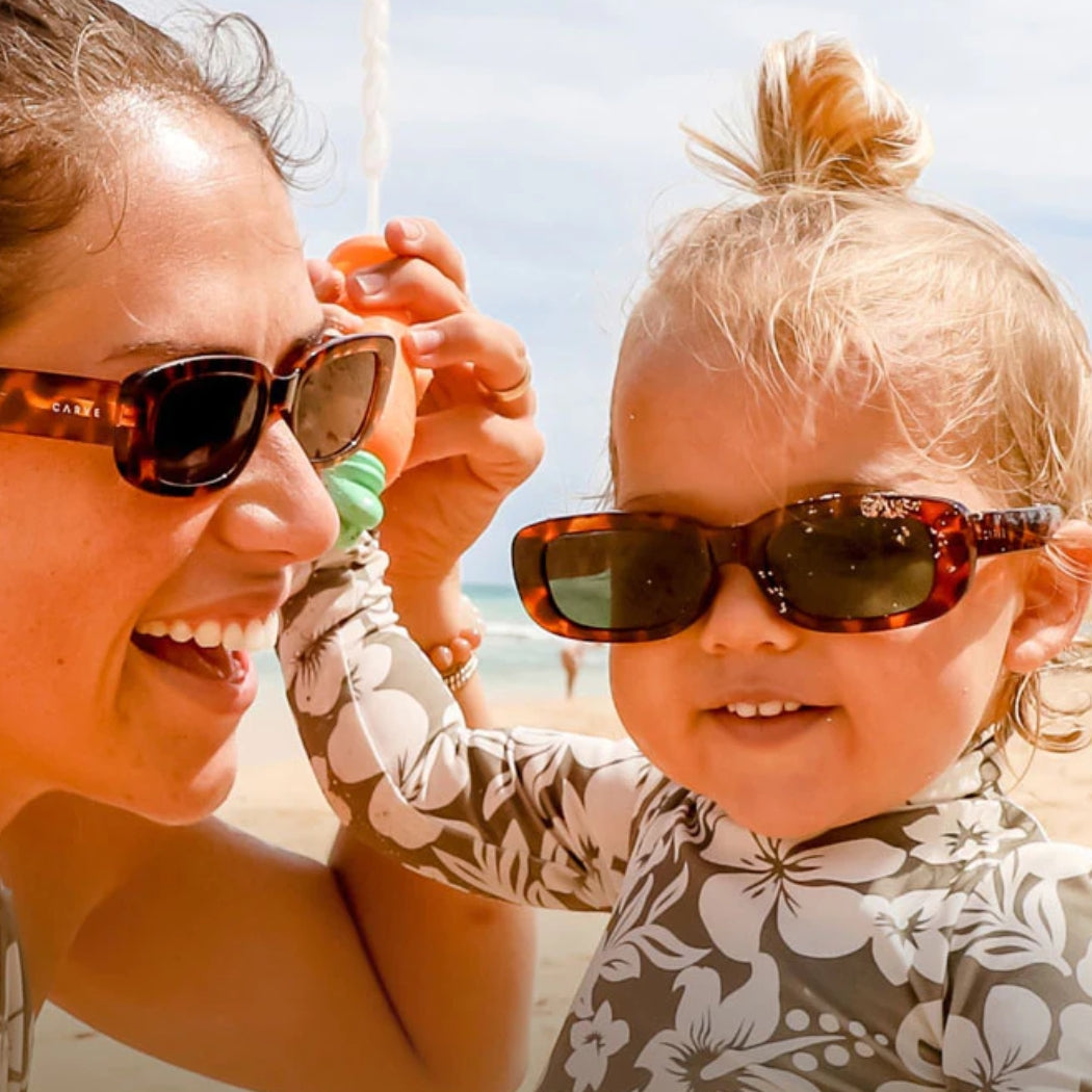 The Carve Lizzy Gloss Tort Green Polar are girls eyewear. This oversize modern bright sunglasses are a cute cut down of womens styles. Every carve sunglass comes in a branded pouch with an internal cleaning cloth attached.