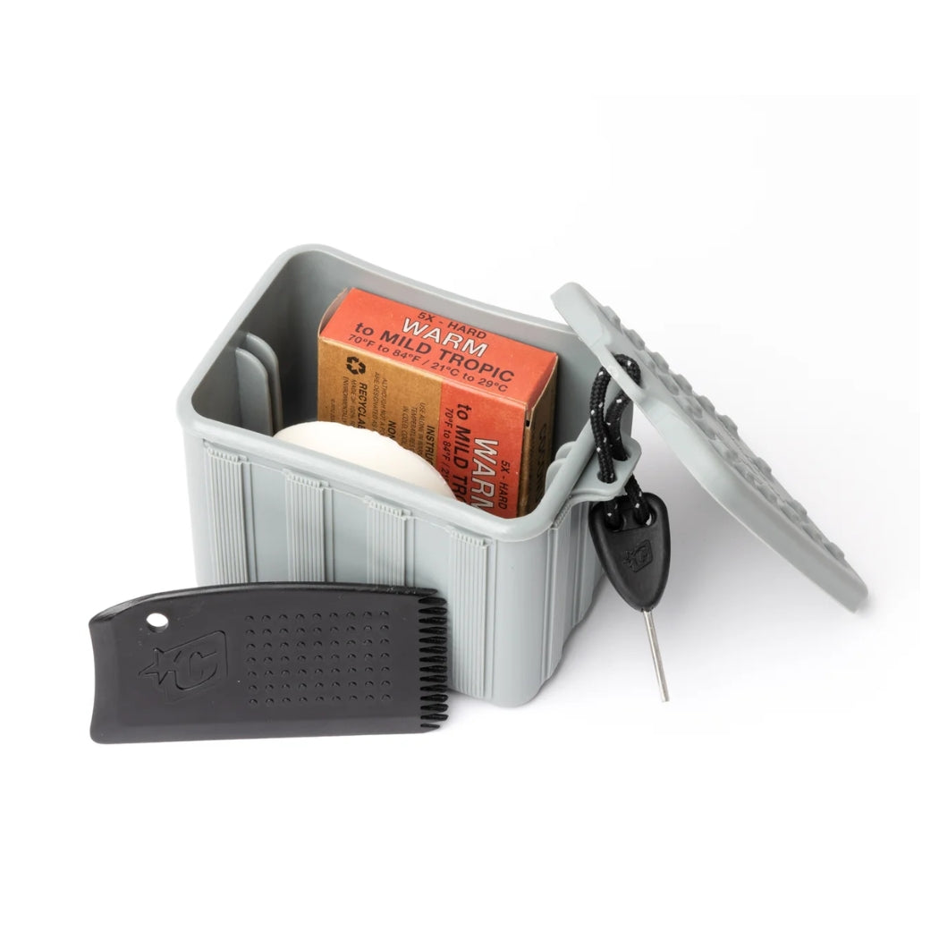 The Creatures Of Leisure Flexi Tub Multi Platinum is a surf wax storage solution. This tub has dual compartments for your two blocks of wax, divided by an easy to access waxcomb. Keep your car wax free and clean. Package includes a fin key and leash string.