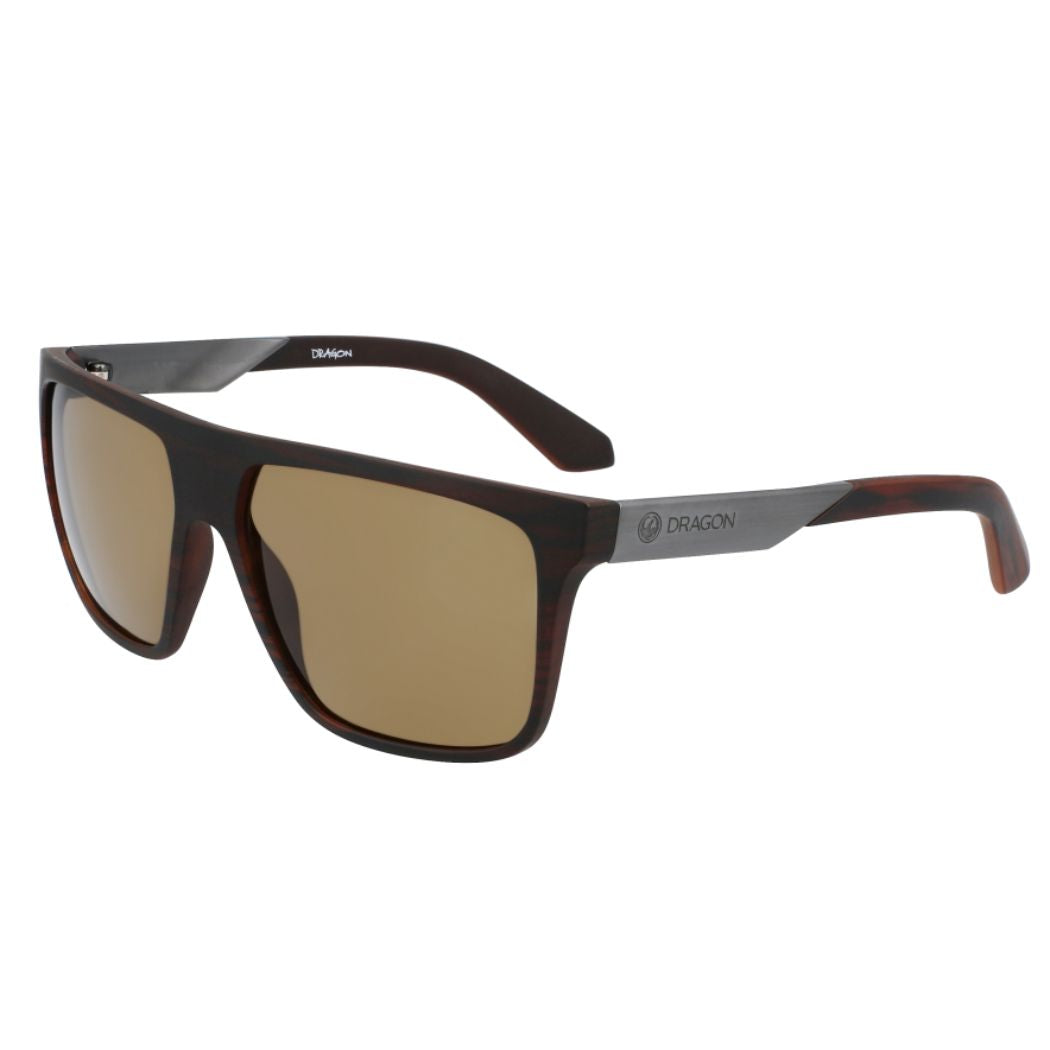 The Dragon Vinyl Teakwood LL Brown are unisex eyewear. These medium sized sunglasses are constructed from metal and plant based resin temples, built with Lumalens optimization for crystal clear vision.