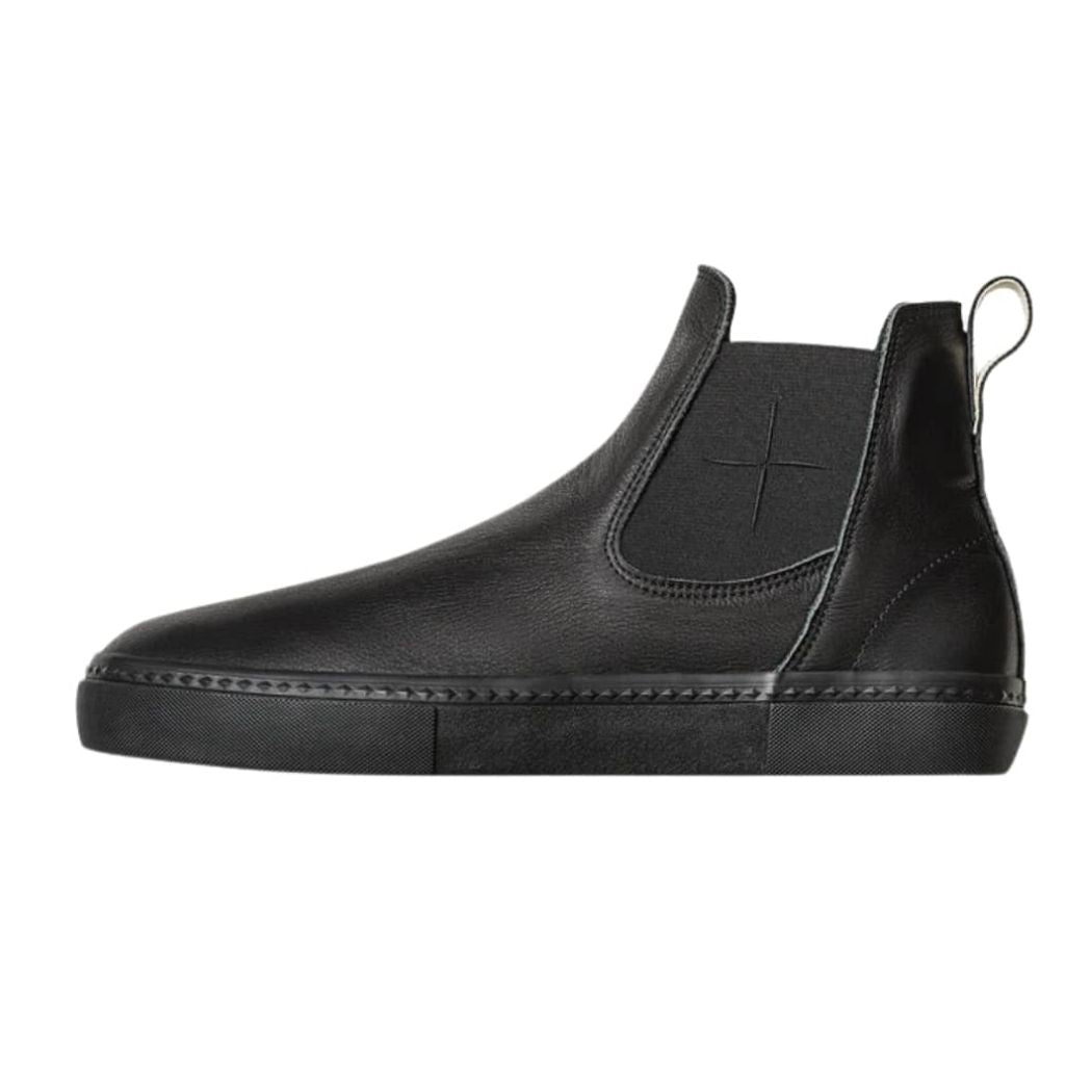 The Globe Dover II Black Wasted Talent is a skate shoe boot. This vulcanized slip on is now an inch taller with heel pod for improved fit and comfort. Designed for skateboarding, the Dover II features Globe's Shockbed insole for impact control. Stretch elastic gore allows for easy slip on entry. Made from full grain leather.
