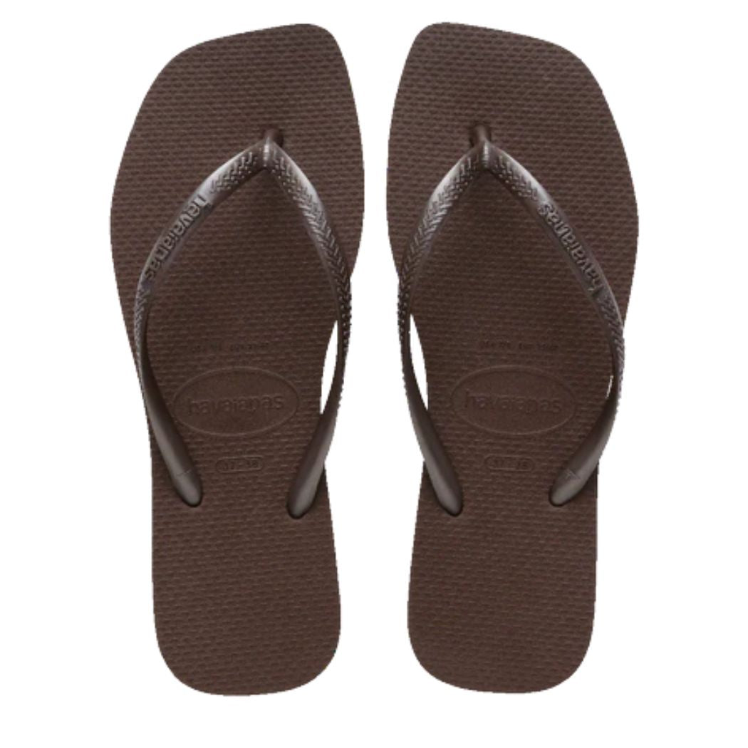 The Havaianas Slim Square Dark are womens open toe footwear. They are a beach day essential, and are perfect for that easy, sun-soaked vibe. They’ve got a cute square toe that gives them a little extra style, but still keep that classic comfy feel we all love. Super lightweight and made to last, they’re the kind of thongs you can wear from the sand to the street without missing a beat.