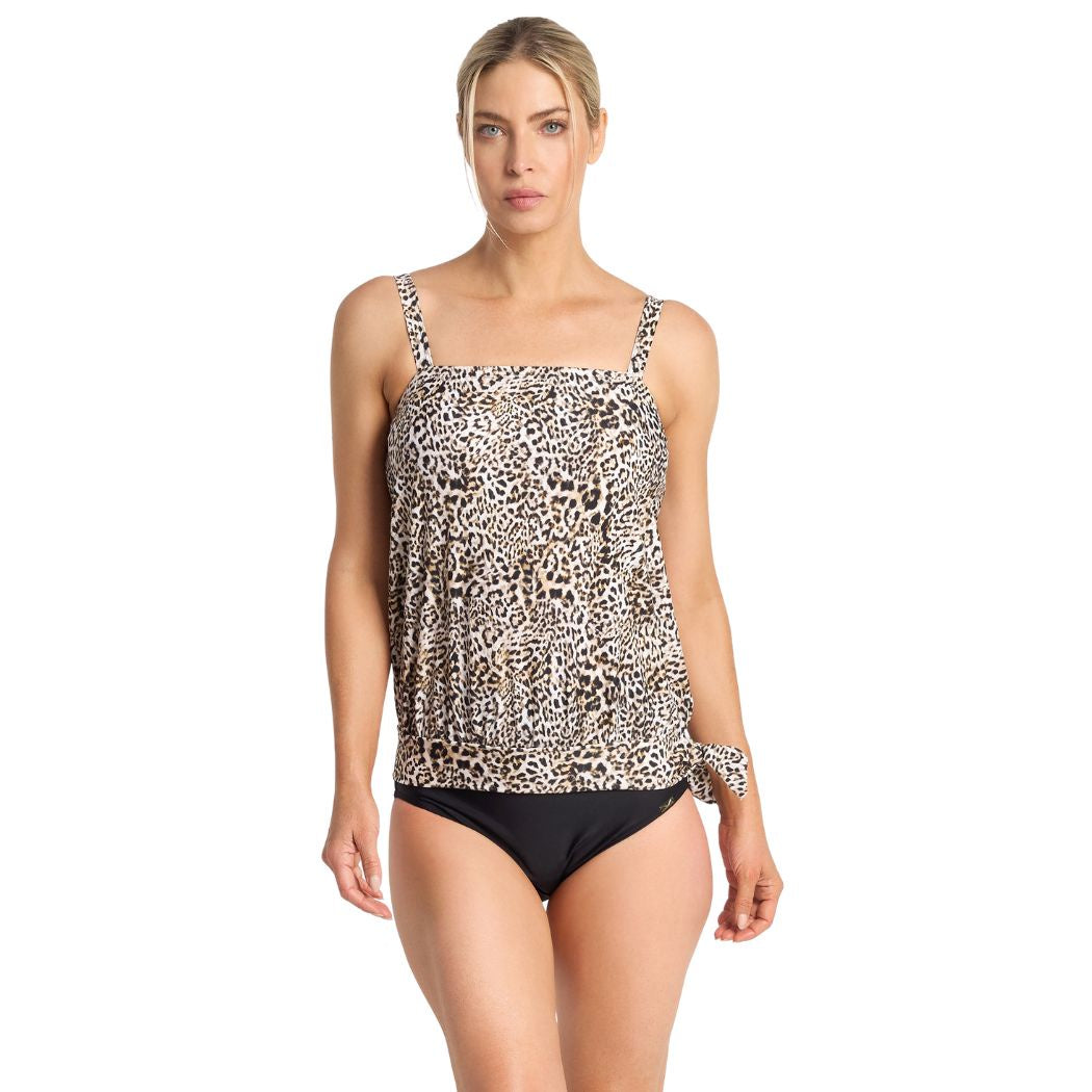 The Jantzen Select Blouson Two Piece Black is a two piece swimwear set. A full blouson swim top has fixed soft bra cups, powermesh shelf bra and an elastic neckline. Soft flowy and pretty. Comes with a full Jantzen pant.