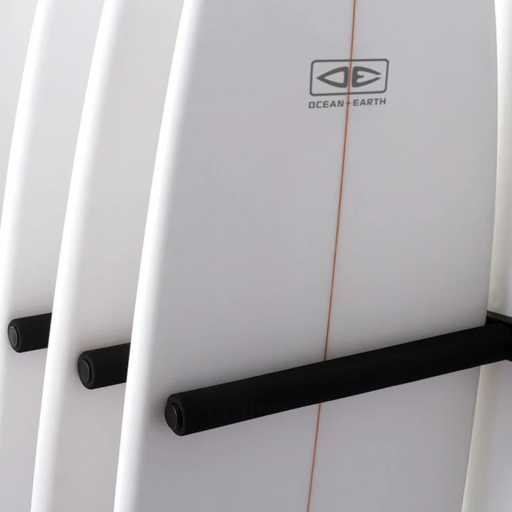 The Ocean And Earth Stack Rax Single is a surfboard storage system. Featuring a heavy-duty metal frame and 50mm soft protective EVA padded sleeves to protect your sticks. This surfboard rack holds 4 boards and is easily mounted onto the wall with the hardware pack and instructions provided. Store more than 4 boards or up to 8 boards without fins.