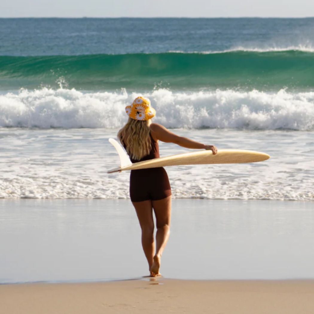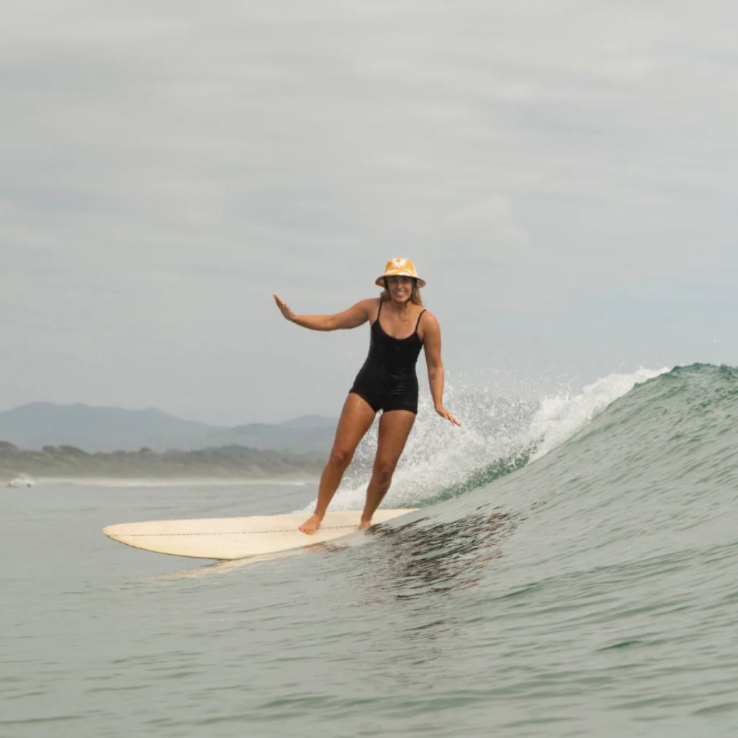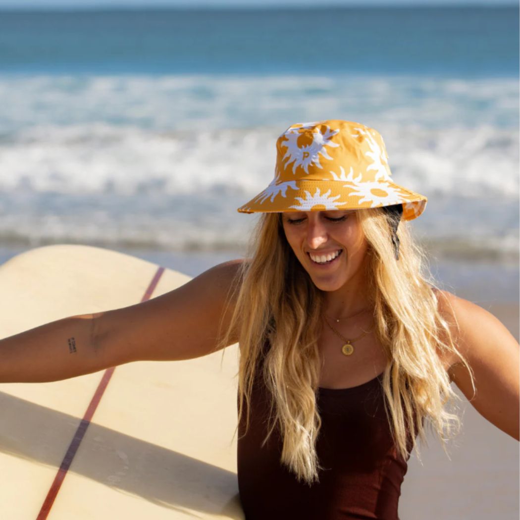 The Plow Surf Co Kendall Baggerly Surf Bucket is a unisex surf hat. It brings pure surf girl energy with a mix of fun style and serious function. Designed for long sunny sessions, it features a stiff brim to keep it out of your eyes when duck diving and a chin strap so it stays put through any wipeout. Offering solid sun protection and easy comfort, it’s perfect for long beach days, salty hair, and that laid-back Plow vibe. Pretty, practical, and made for girls who live for the ocean.