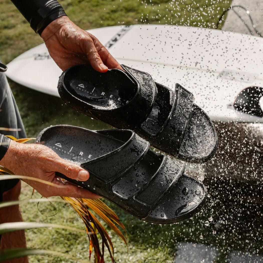 The Reef Oasis Adapt Black are mens open toe footwear. Built water-friendly and super comfy, these bad boys dry fast and stay put thanks to their adjustable straps—perfect for post-surf chill, boat days, or firing up the BBQ with your crew. Lightweight, easy on and off, and made to handle the salt, sand, and whatever else your beach day throws at you.