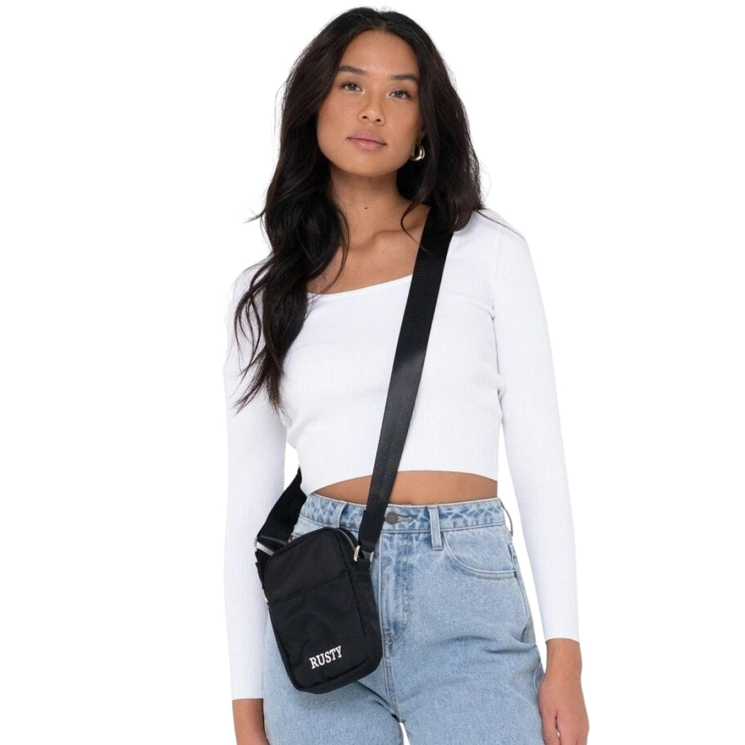 The Rusty Marathon Nylon Side Bag is a great street bag. Perfect for your phone and essentials in a great size and shape. It is durable and has a removable strap and Rusty embroidery.