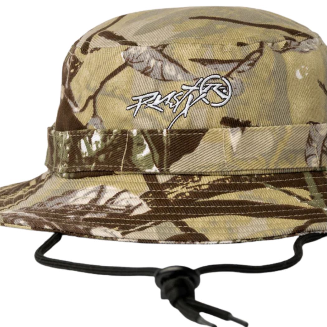 The Rusty Rambo Camo Bucket Hat Camo 1 is a mens hat. It is made for sun-heavy days at the skatepark or the beach. The classic bucket fit offers solid coverage while the camo print brings a punch of street attitude to any outfit. Lightweight and easy to wear, it’s a go-to lid you can throw on for skating, beach missions, or everyday cruising when sun protection and style both matter.