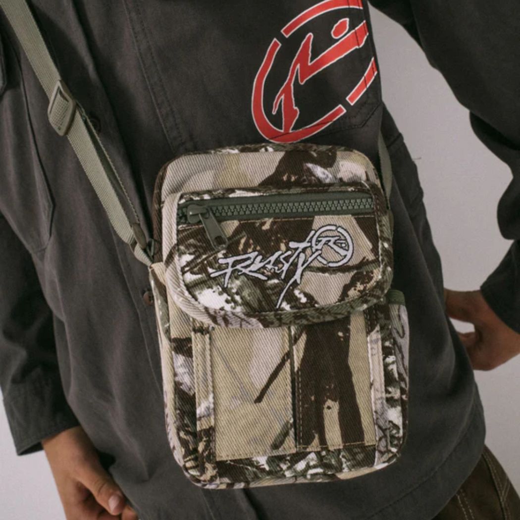 The Rusty Rambo Camo Crossbody Bag Camo 1 is a mens cross body bag. Designed for easy days on the move, this compact men’s bag is perfect for stashing your phone, wallet, sunnies and keys while you’re out and about. Worn crossbody for comfort and quick access, it delivers that clean Rusty look with everyday practicality.