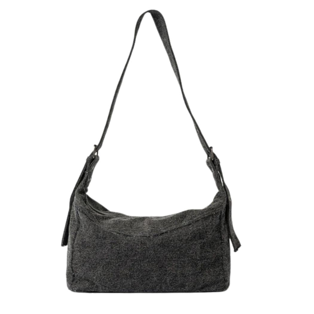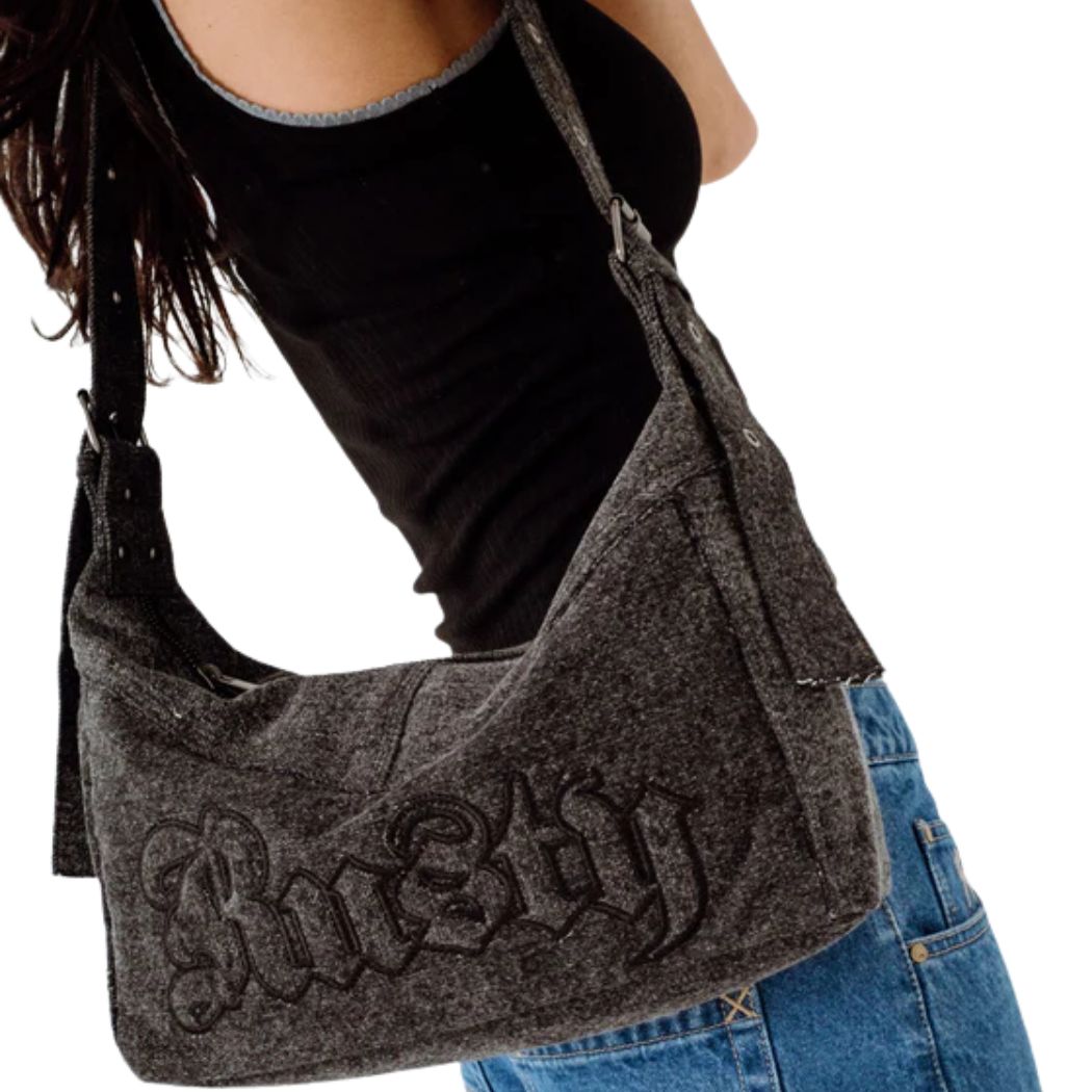 The Rusty Roxanne Denim Shoulder Bag Washed Black is a womens shoulder bag. Crafted in classic denim with a throwback shoulder bag shape, this versatile handbag is perfect for long days out and easy evenings. Compact yet roomy enough for your essentials, it’s the ideal grab-and-go accessory for beach runs, market strolls, arvos with friends or nights out.
