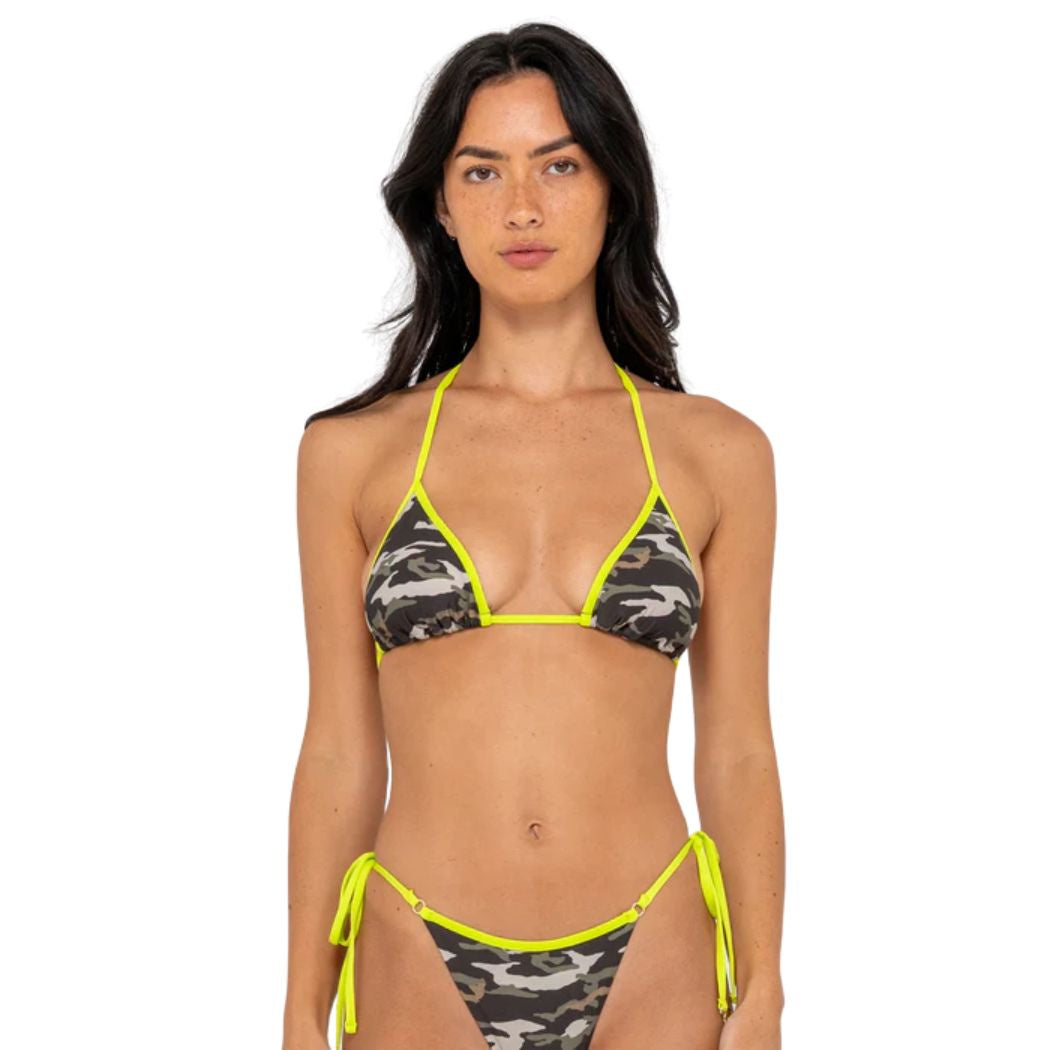 The Rusty Tank Girl Multiway Bikini Top Camo is a womens bikini top. brings back that retro surf energy with devil trims and bold logos that pop. Designed for sunny beach days, tanning sessions, and summer surf, it’s all about versatility and fun. The multiway straps let you style it how you like, whether you’re chasing waves or chilling on the sand. With that signature Rusty edge, it’s the perfect match to the Tank Girl Cheeky Bikini Bottom for an all-out throwback summer look.