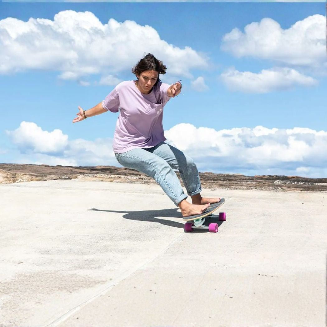 The Smoothstar 31inch Johanne Defay Aqua andGrey TDC model is a SmoothStar Surf Trainer. It has been closely developed with Female pro-surfer Johanne Defay and mimics her powerful carving surf turns. The 31″ model has the deepest concave of all of the smaller high-performance models under 32.5″. The deeper concave enables riders to hold the rail more than other models and helps maintain compression through the turn, just like surfing.