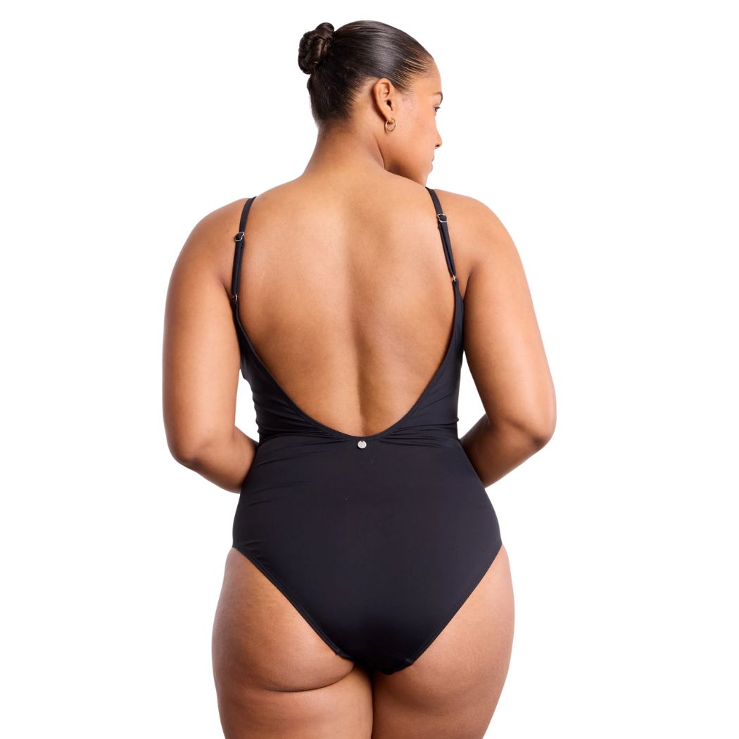 The Sunseeker Basix Ballerina One Piece Black is womens swimwear. This clean-cut and elegantly simple swimsuit offers a sophisticated silhouette that flatters all body types while providing exceptional support for all-day comfort. Simple and timeless lines and a classic black colour. Great for swimming, resort wear and all day beach comfort.